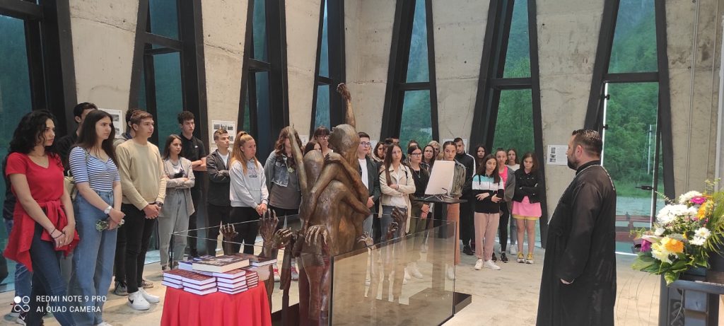 Матуранти одликаши Основне школе „Вук Караџић“ из Вишеграда посјетили су данас спомен-комплекс у Старом Броду, гдје им је свештеник Драган Вукотић приредио историјски час.
