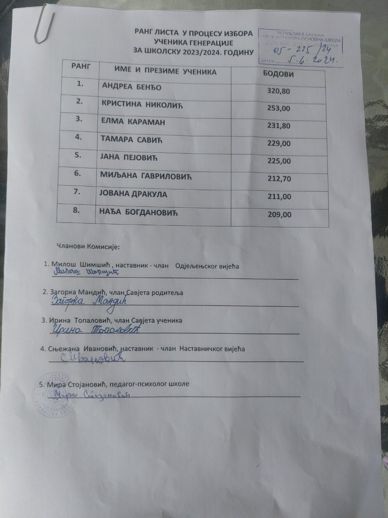 Она је наш ученик генерације на кога смо бескрајно поносни као и на цијелу генерацију коју ових дана испраћамо из наше школе.